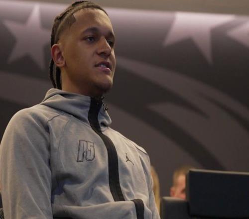 作为2024年选秀状元,18岁的弗拉格刚踏入联盟便展现出超越年龄的成熟。与高中时期的詹姆斯同龄,他的防守天赋已达到“联盟顶级”水准——体型均衡且换防能力极强,能从一号位防到四号位,弹速与二次弹跳能力卓越,大学时期场均1.4抢断、1.4盖帽的表现,印证了他“防守端多面手”的属性。进攻端,他的技能包同样全面:冲击篮筐果断,传球嗅觉敏锐,季前赛首秀三分3中2的表现,更打破了“投射短板”的质疑。