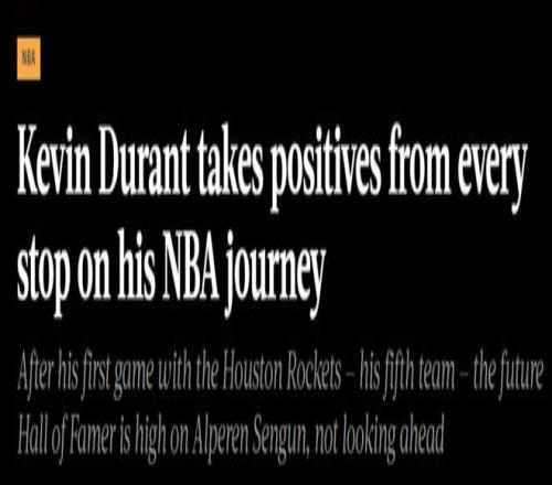 “这太不可思议了。我一直以来最喜欢的一些球员都曾为火箭队效力,他们为火箭队奠定了基础,也助力打造了球队品牌,”杜兰特说,“能成为其中的一员,意义重大。”