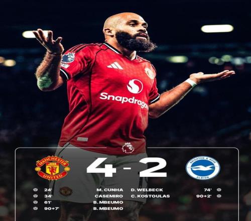 随后布莱顿疯狂反扑,先是由维尔贝克扳回一球,后则是科斯图拉斯在第92分钟再下一城,比分变成了曼联3-2布莱顿,悬念又起。