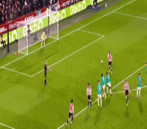 第44分钟,红军再遭打击,达姆斯高送出穿透力极强的直塞,沙德单刀推射建功,布伦特福德将比分扩大到2-0!