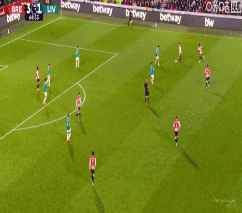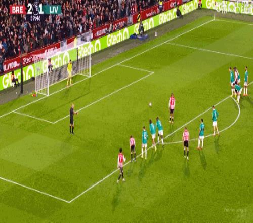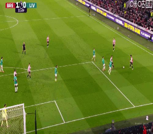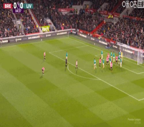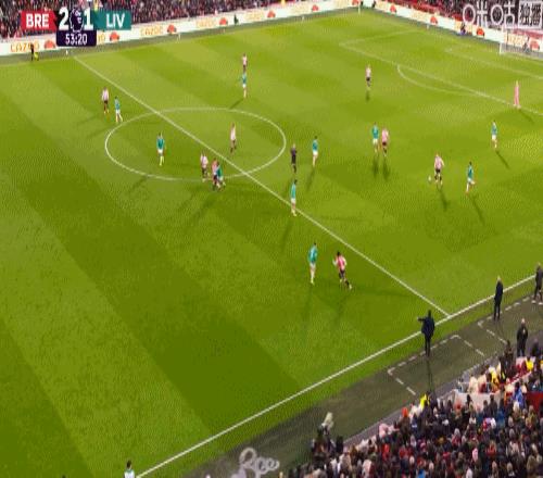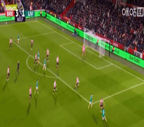 第5分钟,手榴弹战术,瓦塔拉半凌空倒钩破门,布伦特福德1-0利物浦