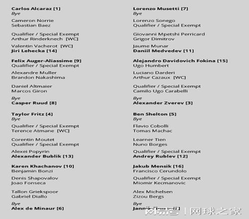 北京时间昨晚,本赛季最后一站ATP1000大师系列赛--巴黎站公布了男单正赛签表。世界前八中,除了此前宣布退赛的塞尔维亚球王德约科维奇,其他人都悉数出战。世界第一阿尔卡拉斯与美国一哥弗里茨领衔上半区,世界第二辛纳和德国一哥小兹维列夫镇守下半区。前八大种子的对位:阿尔卡拉斯--鲁德、弗里茨--德米纳尔、穆塞蒂--兹维列夫、谢尔顿--辛纳。保加利亚帅哥迪米特洛夫伤愈复出,首轮将对阵法国大炮佩里卡德。