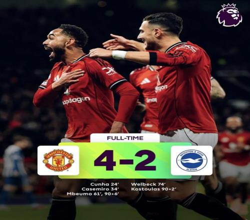 上半场,库尼亚为曼联首开记录,随后卡塞米罗的传射建功帮助曼联获得了2-0的领先!下半场第61分钟姆伯莫接谢什科助攻破门取得三球领先!虽然此后曼联旧将维尔贝克在75分钟破门,科斯图拉斯在92分钟头球破门将比分追到只差一球,但在伤停补时最后时刻,姆伯莫的梅开二度最终帮助曼联以4-2锁定胜局!