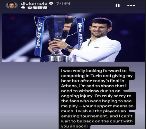 我真的希望能以一个最好的状态去都灵参加年终总决赛,但在今天雅典的比赛后,我很遗憾地宣布我将因伤退赛。对于想来看我比赛的粉丝们,我感到非常抱歉,你们的支持对我来说意味着一切。我希望所有参赛者可以打出一站精彩的比赛,同时我也期待着尽快重返赛场!